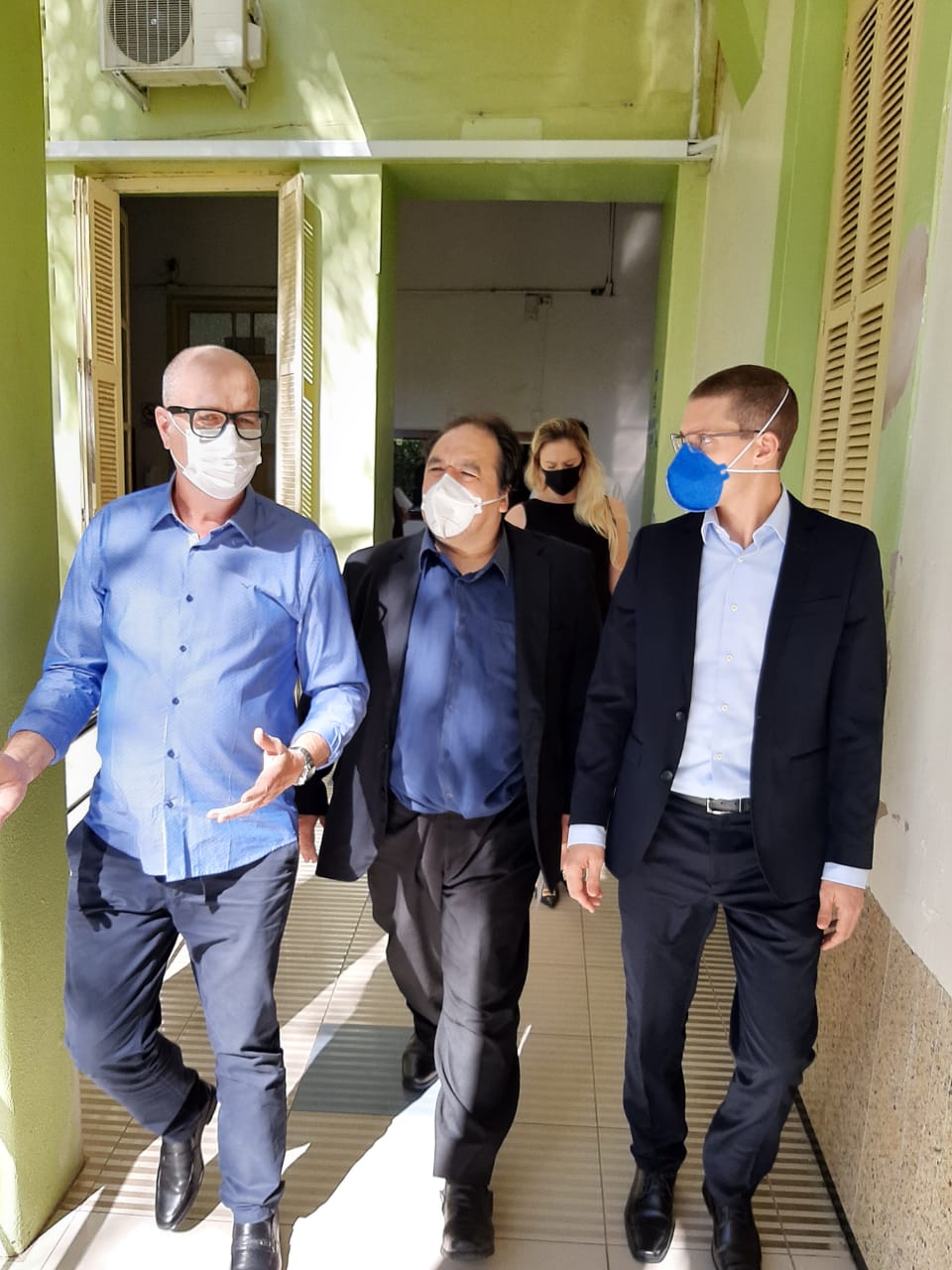 Nessa oportunidade as autoridades da área médica visitaram nossa Instituição, acompanhados da farmacêutica hospitalar e responsável técnica Cintia Renata da Silveira, onde puderam verificar in loco o baixo estoque de medicamentos relacionados ao Kit Intubação COVID (que é composto, principalmente, das seguintes medicações: Rocurônio, Midazolan e Fentanil).