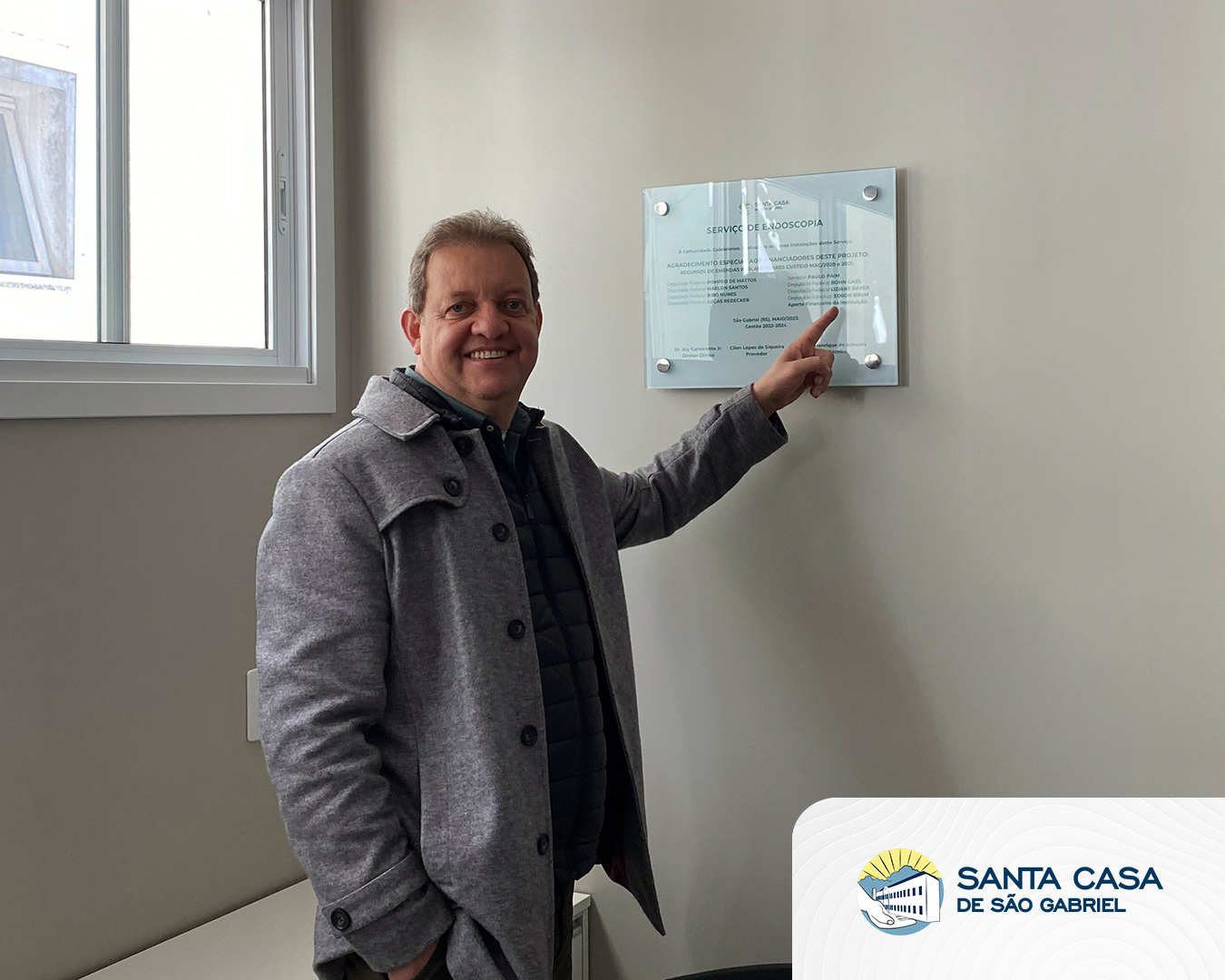 Recebemos hoje (29 de julho) na Santa Casa de São Gabriel uma visita do Deputado Estadual Edivilson Brum (MDB). No encontro foram debatidas questões sobre a área da saúde e maneiras de solucionar demandas provenientes de um hospital. O Provedor Sr. Cilon Lopes da Siqueira entregou em mãos ao deputado um projeto solicitando recursos para materiais necessários à Santa Casa. Também foi realizada uma visitação em algumas áreas do hospital para mostrar nossas instalações e também as obras em andamento. Agradecemos a visita do deputado e sua equipe. Reconhecemos seu comprometimento com a saúde de nossa comunidade.
