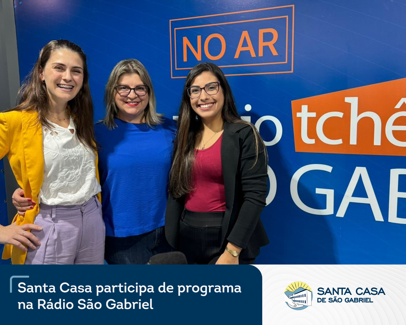 No dia 16 de abril, em comemoração aos 169 anos do hospital, a Santa Casa de São Gabriel foi convidada a participar do programa Mulheres de Sucesso, apresentado pela Franciéle Picinin Borges (@feelingassessorias) na Rádio São Gabriel (@radiosaogabriel_). Representando a Instituição, a Enfermeira Responsável pela UTI II, Danieli Cristina Pereira, e a Secretária da Provedoria, Nathália Gonhi Santana, falaram sobre suas trajetórias profissionais e o trabalho realizado pela Santa Casa em prol da comunidade gabrielense e região, que visa o bem estar de todos seus pacientes que aqui chegam. Agradecemos à Rádio e à Franciéle pelo convite para participar do programa, a conversa foi muito prazerosa e é uma satisfação poder dividir nossa história.