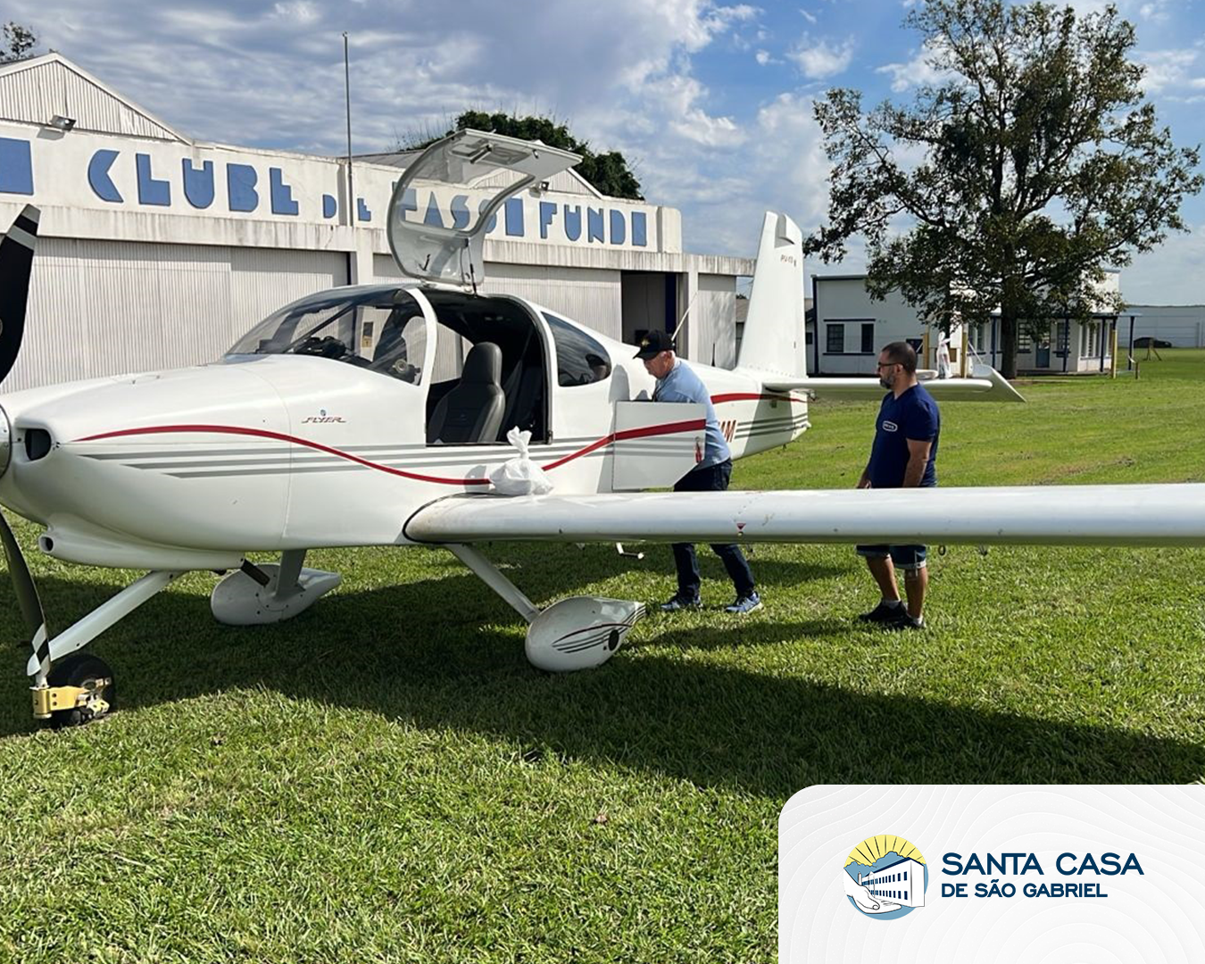 A Santa Casa de São Gabriel agradece aos voluntários José Leonardo Kaczmarck, Rodolfo Machado e Iuri Kaczmarck que, por meio de aviões, auxiliaram na busca de medicamentos e insumos para o hospital nas cidades de Passo Fundo e Santa Cruz do Sul. Agradecemos também ao Exército Brasileiro na ajuda com as aeronaves e à Prefeitura de São Gabriel que, pelas estradas, trouxe de Santa Maria as dietas para a nossa Instituição. Estas atitudes irão colaborar muito com o bem-estar da comunidade gabrielense neste momento de dificuldades.