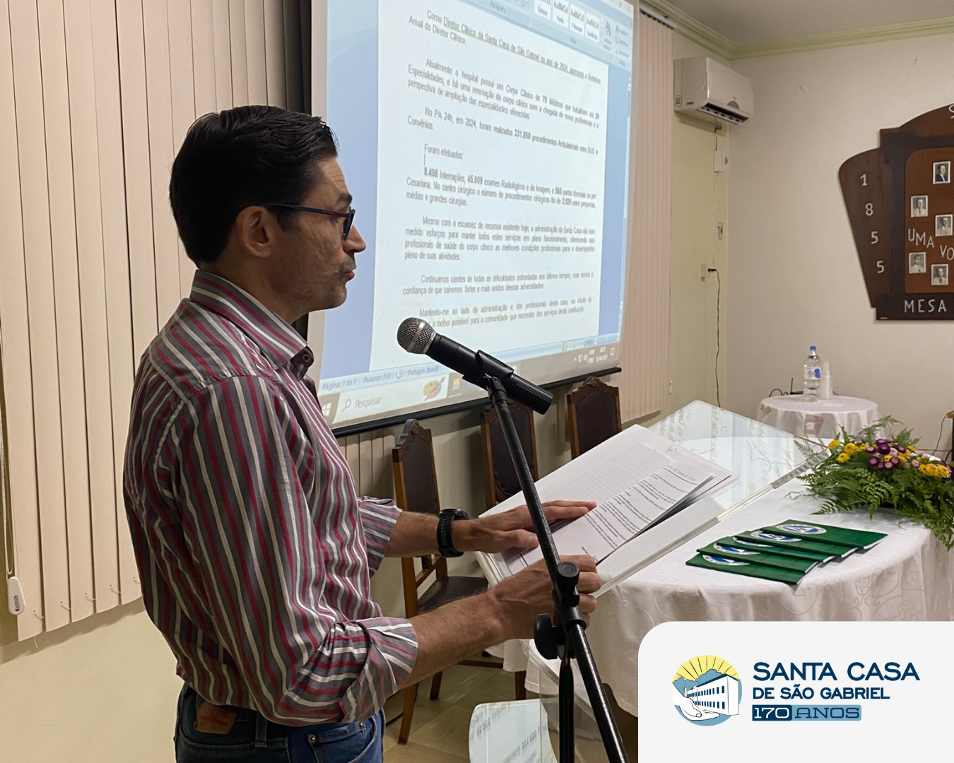 Na última terça-feira (15), data em que completou 170 anos de fundação, a Irmandade da Santa Casa de Caridade de São Gabriel realizou sua Assembleia Geral Ordinária de Prestação de Contas, no Salão Nobre da instituição. O evento reuniu associados, autoridades locais e membros da equipe gestora e assistencial.