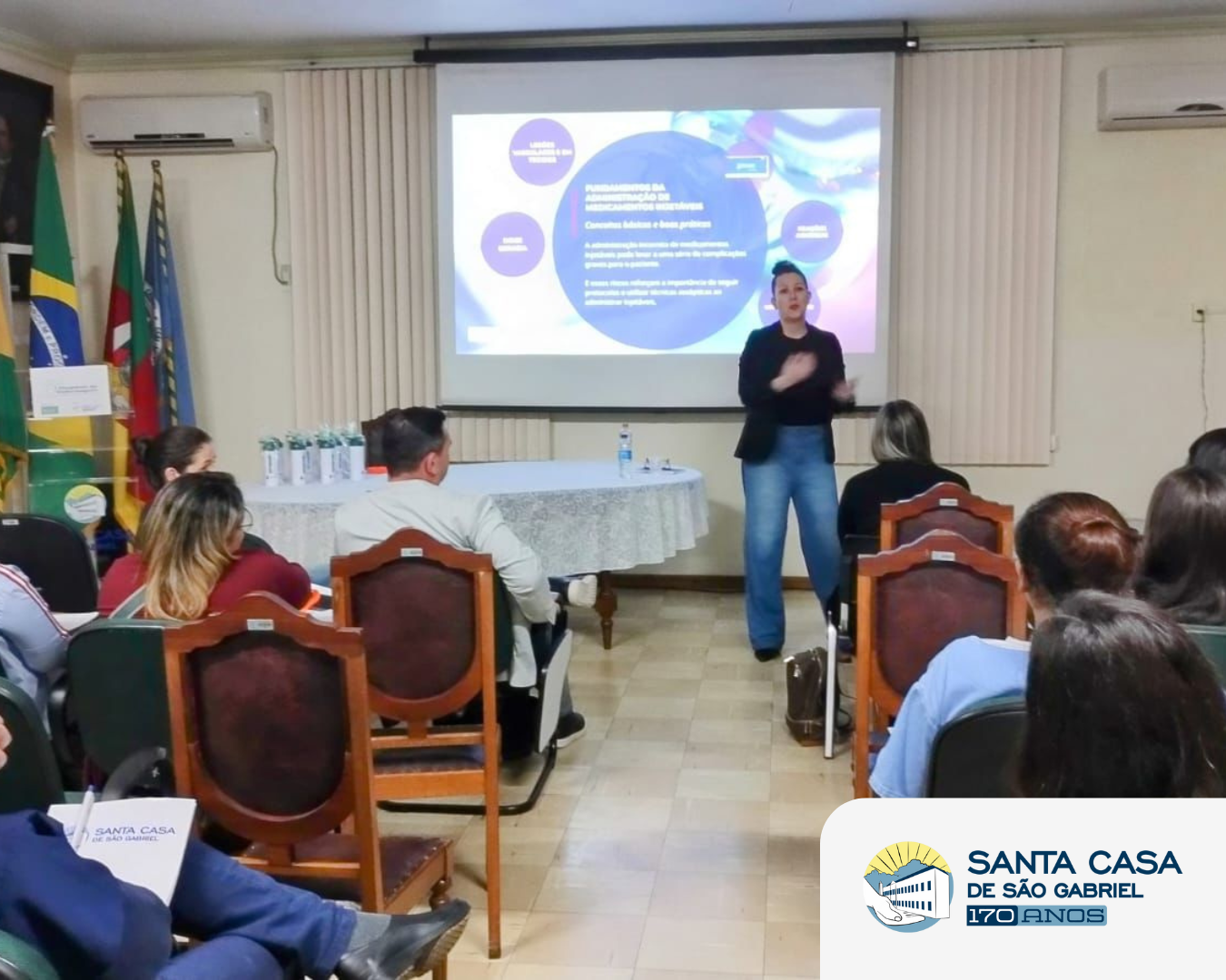 Nesta terça-feira, 27, a Santa Casa de Caridade de São Gabriel realizou o I Simpósio de Enfermagem – Qualificando Rotinas, Aprimorando o Cuidado, um evento que reforçou o compromisso da instituição com a educação continuada e a qualificação do cuidado.
