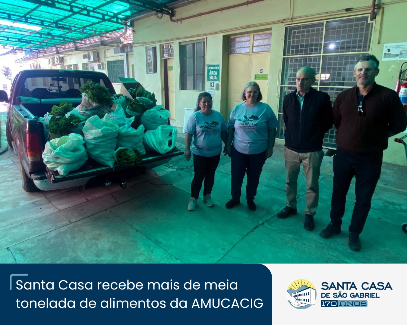 A Santa Casa de Caridade de São Gabriel recebeu, nesta sexta-feira (26/09), a doação de mais de meia tonelada de alimentos (509 quilos) por meio do Programa de Aquisição de Alimentos (PAA), executado pela Companhia Nacional de Abastecimento (CONAB) em parceria com a Associação de Mulheres do Campo e da Cidade Guajuviras (AMUCACIG).