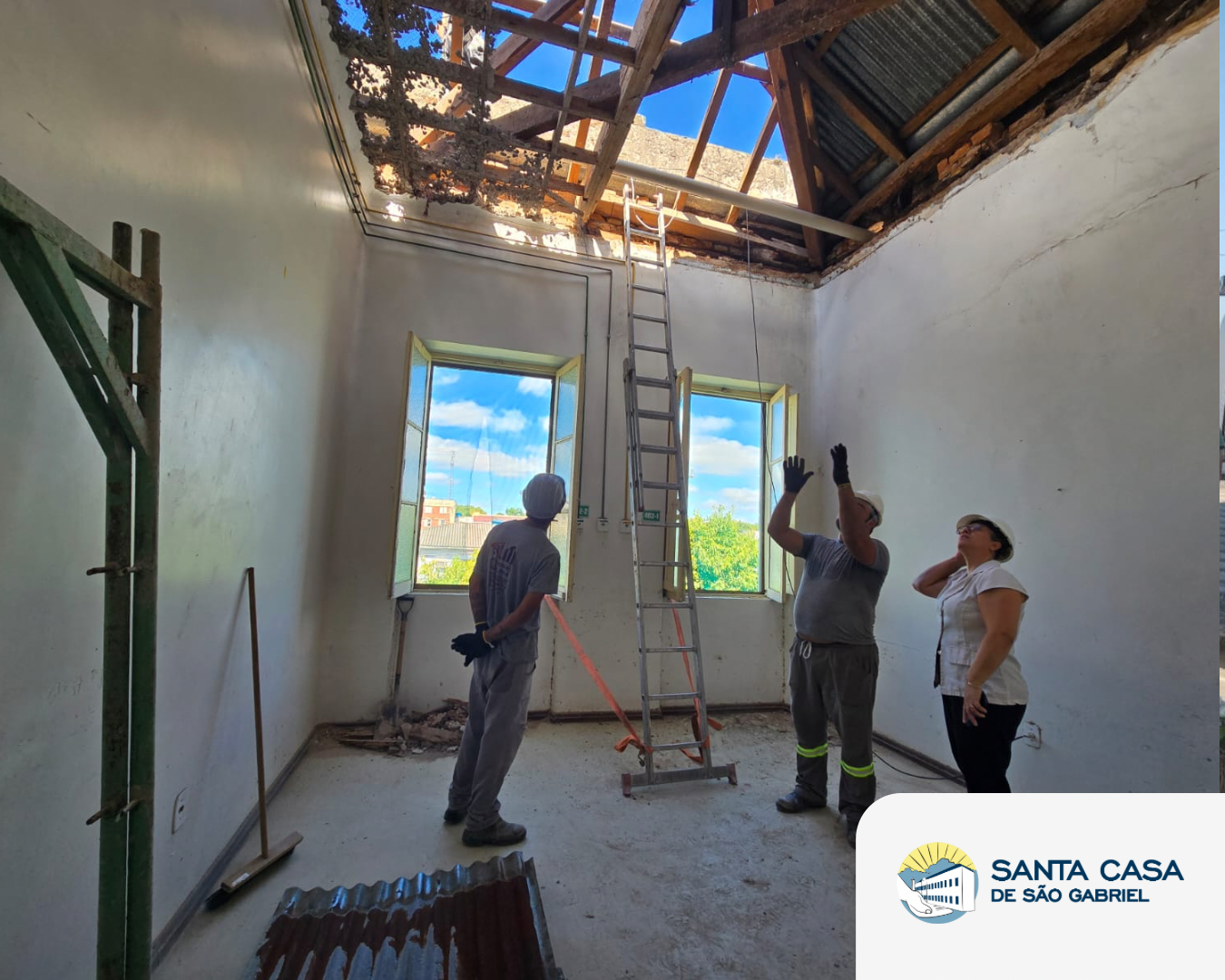 A Santa Casa de São Gabriel iniciou, na última semana, uma obra de recuperação estrutural no telhado da Unidade B. A reforma ocorre devido ao desgaste natural da edificação ao longo dos anos, especialmente na estrutura de madeira que sustenta as telhas, que apresentou pontos de comprometimento e acabou afetando também áreas internas, como o forro em gesso.